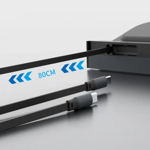 - Dual Retractable USB-C Cables: Features two built-in USB-C cables that extend up to 80cm, providing easy reach for both driver and passenger without the mess of tangled cords.